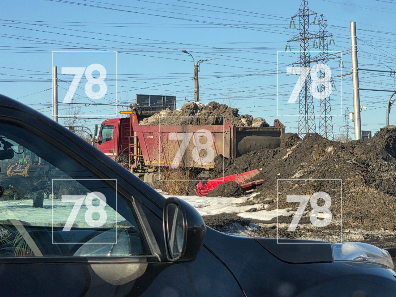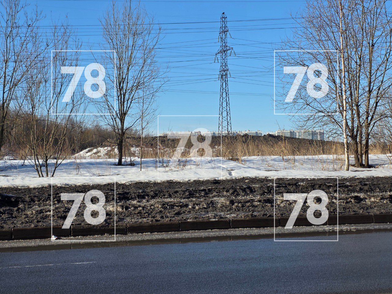 В Красногвардейском районе разрастается полигон грязного снега. Местные жители рассказали , что чёрные кучи чуть ли не круглосуточно свозят на пустырь, расположенный на углу проспекта Косыгина и улицы Передовиков.