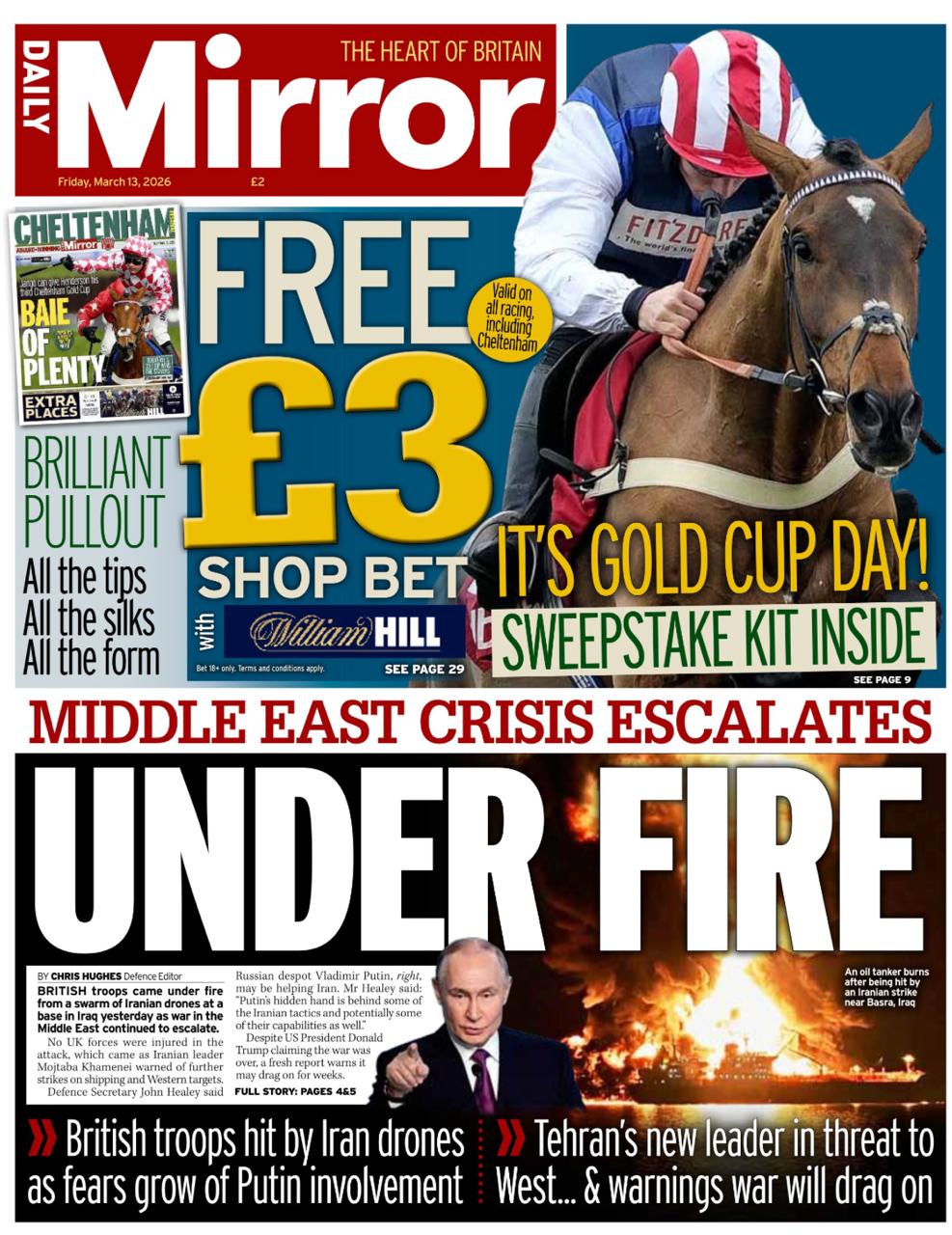 Daily Mirror: «Под огнем. По британским военным бьют иранские дроны, в то время как растут опасения по поводу вовлечения Путина».