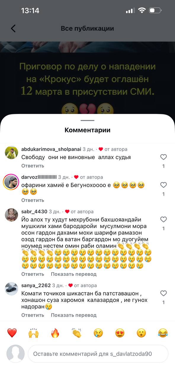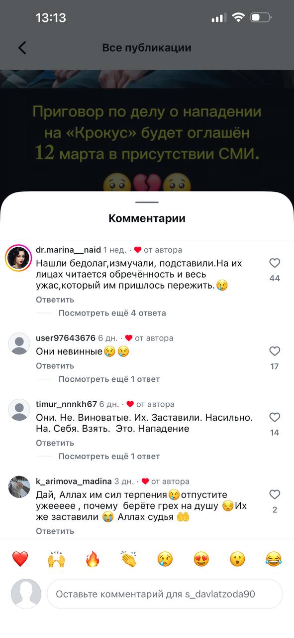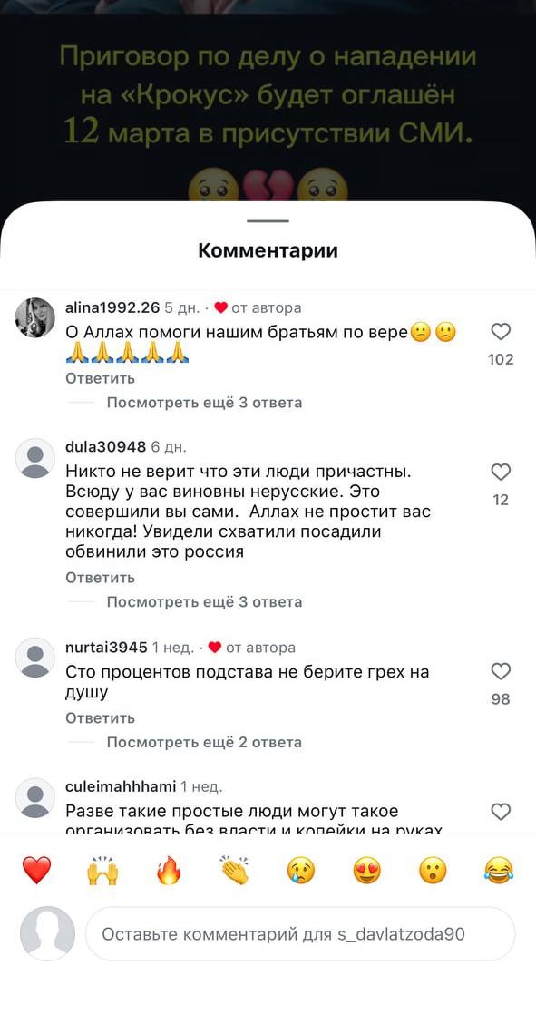 По хорошему, нужно брать за задницу каждого комментатора оправдывающего таджиков-террористов из "Крокуса". Но пока за задницу взяли русского мужика с двумя гвоздиками, в память о геноциде русских в Таджикистане и русского врача-педиатора, за тоже самое. Я понимаю, "приказа не было", слышал такое в 14 году на Майдане от командира "Беркута". Аналогия так себе, но какая-то общая линия прослеживается.