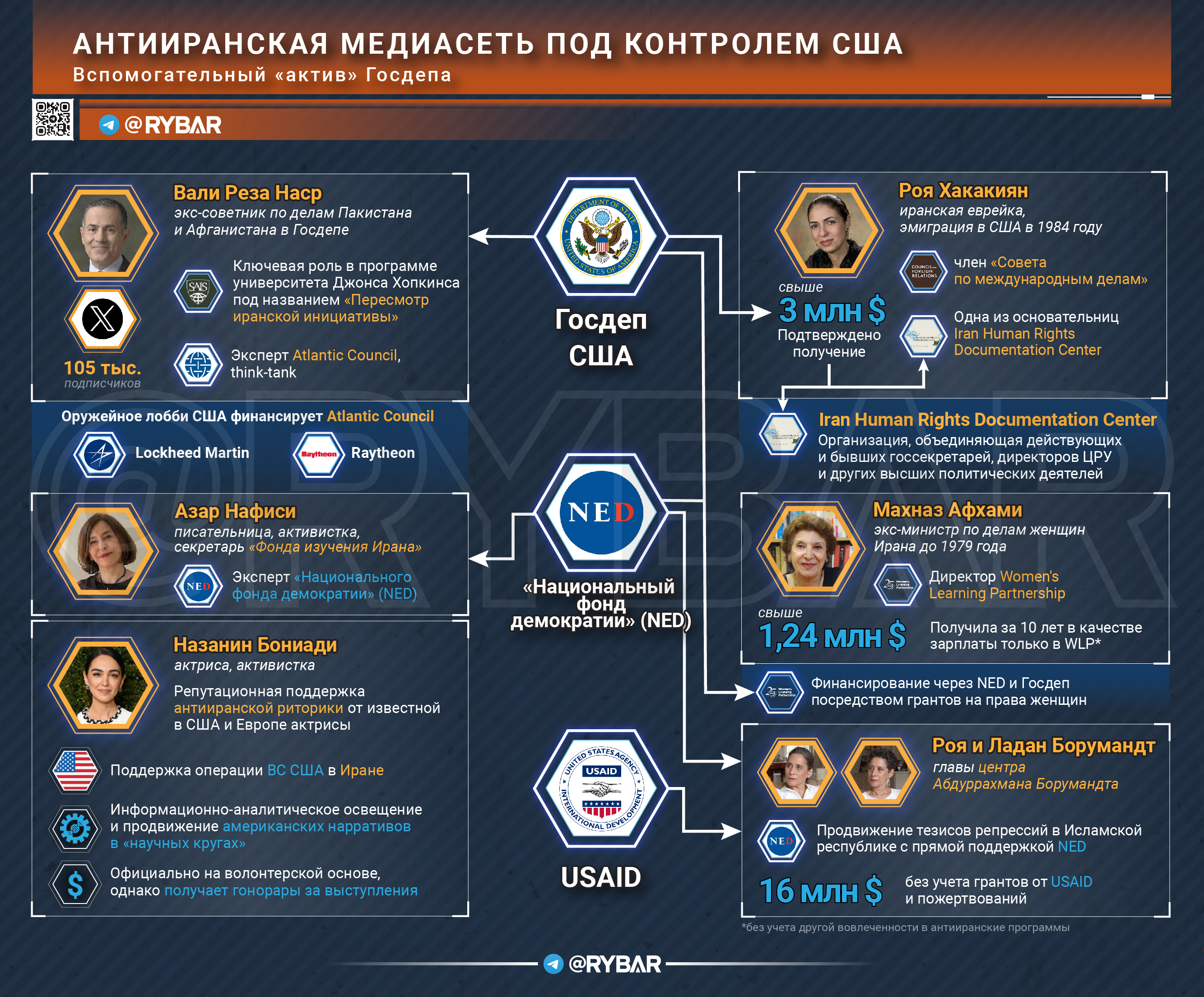 Она является одной из основательниц известного многим Iran Human Rights Documentation Center. И на него Госдеп напрямую выдал 3 млн долларов в самом начале. При этом сама Хакакиян за свои заслуги перед США стала членом «Совета по международным делам» – статусной организации, куда входят действующие и бывшие американские чиновники и разведчики.