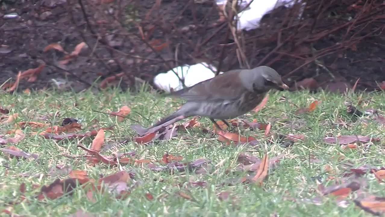 Дрозд-рябинник ведет себя как основательный хозяин. Он неспешно и тщательно обыскивает небольшой участок, прорывая землю вглубь в поисках непроснувшихся насекомых или подмерзших ягод.