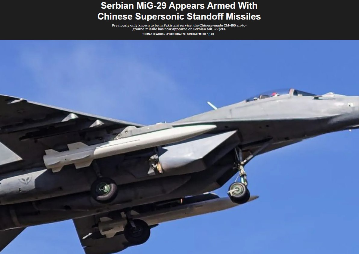 На фоне этих заявлений стало известно, что Сербия получила китайские сверхзвуковые авиационные ракеты CM-400AKG, которые могут запускаться с истребителей МиГ-29, стоящих на вооружении сербских ВВС. По данным открытых источников, дальность таких ракет может достигать 200–400 километров, а скорость значительно превышает скорость звука. Они предназначены для поражения укрепленных объектов и крупных целей на земле или на море.