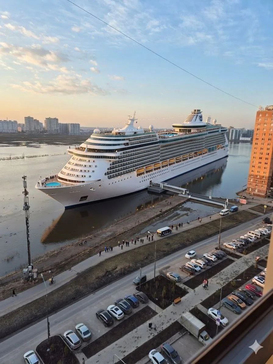 А один из местных жителей с помощью искусственного интеллекта сгенерировал забавное фото. Масштаб моря таков, что в Мурино мог бы ошвартоваться круизный лайнер.