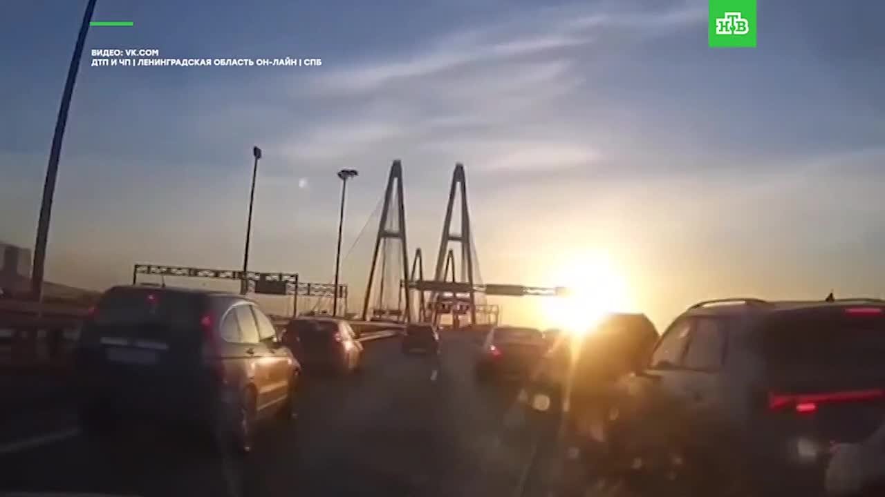 Сразу шесть машин столкнулись перед Вантовым мостом. Водителей ослепило солнце.