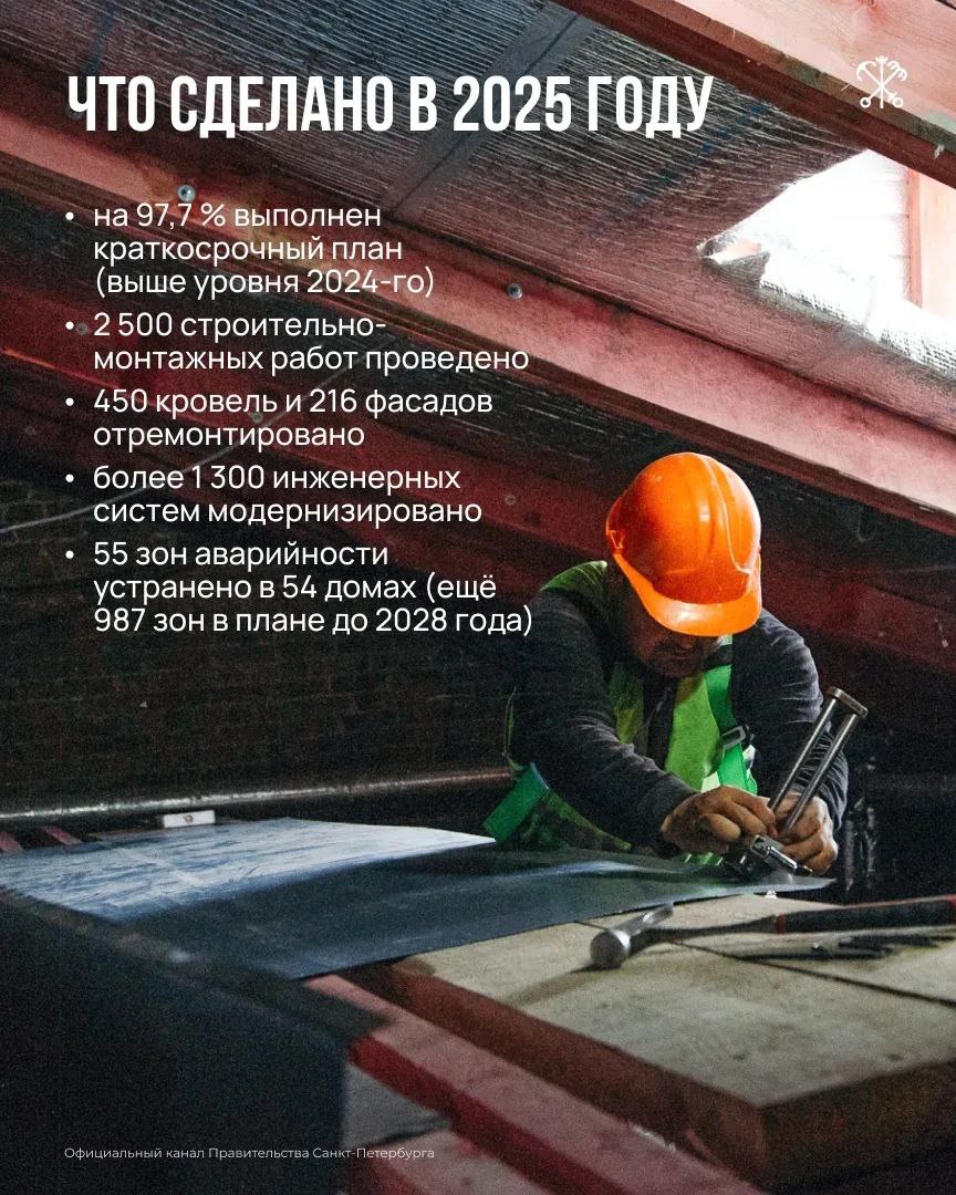 В 2026 году выполнят порядка 2,5 тыс. реноваций крыш, фасадов, коммуникаций и инженерных систем. На это выделено почти 34 млрд рублей.