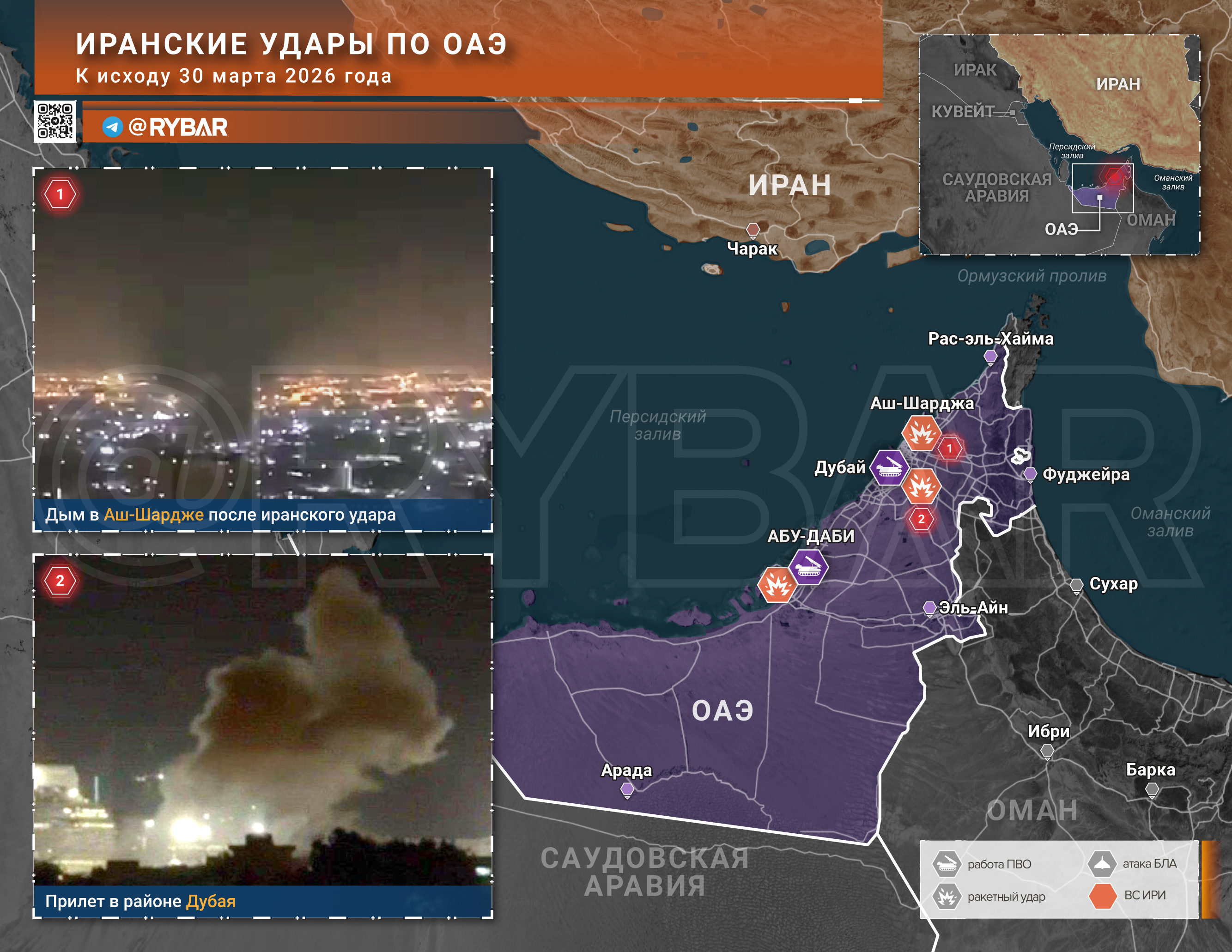 В ОАЭ иранцы вновь делают ставку на удары по уязвимым узлам. Речь идёт как о прилётах по районам Дубая и Шарджи, так и о возможном поражении элементов нефтяной инфраструктуры на маршруте к Фуджейре.