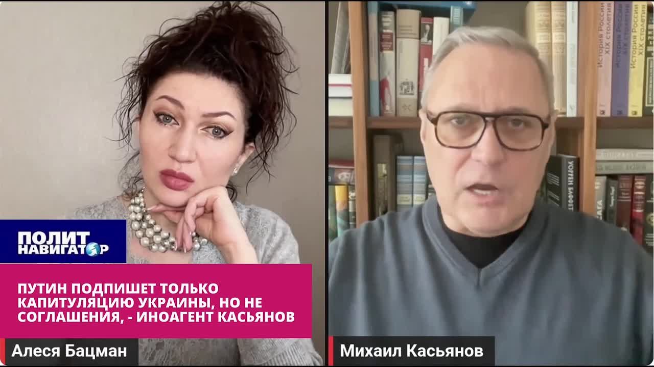 Об этом бежавший на Запад экс-премьер РФ, иноагент и террорист Михаил Касьянов заявил в интервью украинской пропагандистке Алесе Бацман, передает корреспондент «ПолитНавигатора».