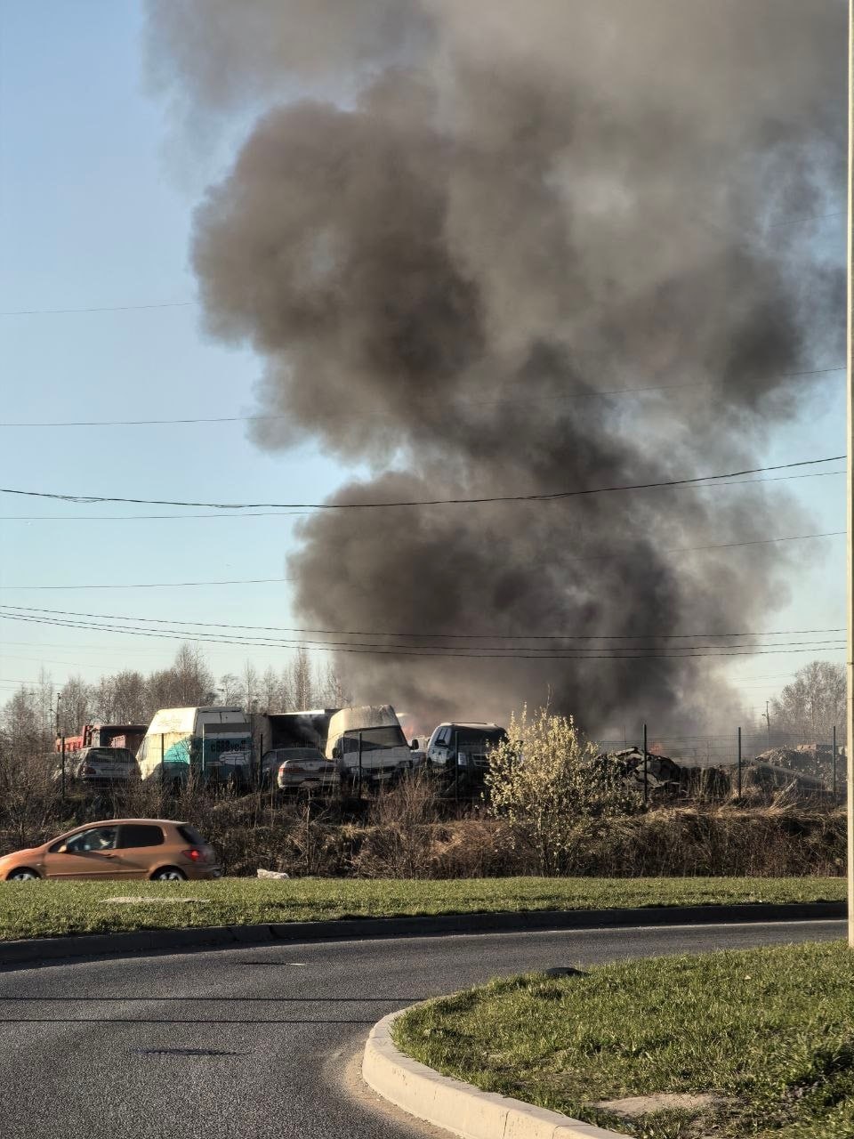 Пожар на Софийской улице. Горят два бензовоза и бытовка.