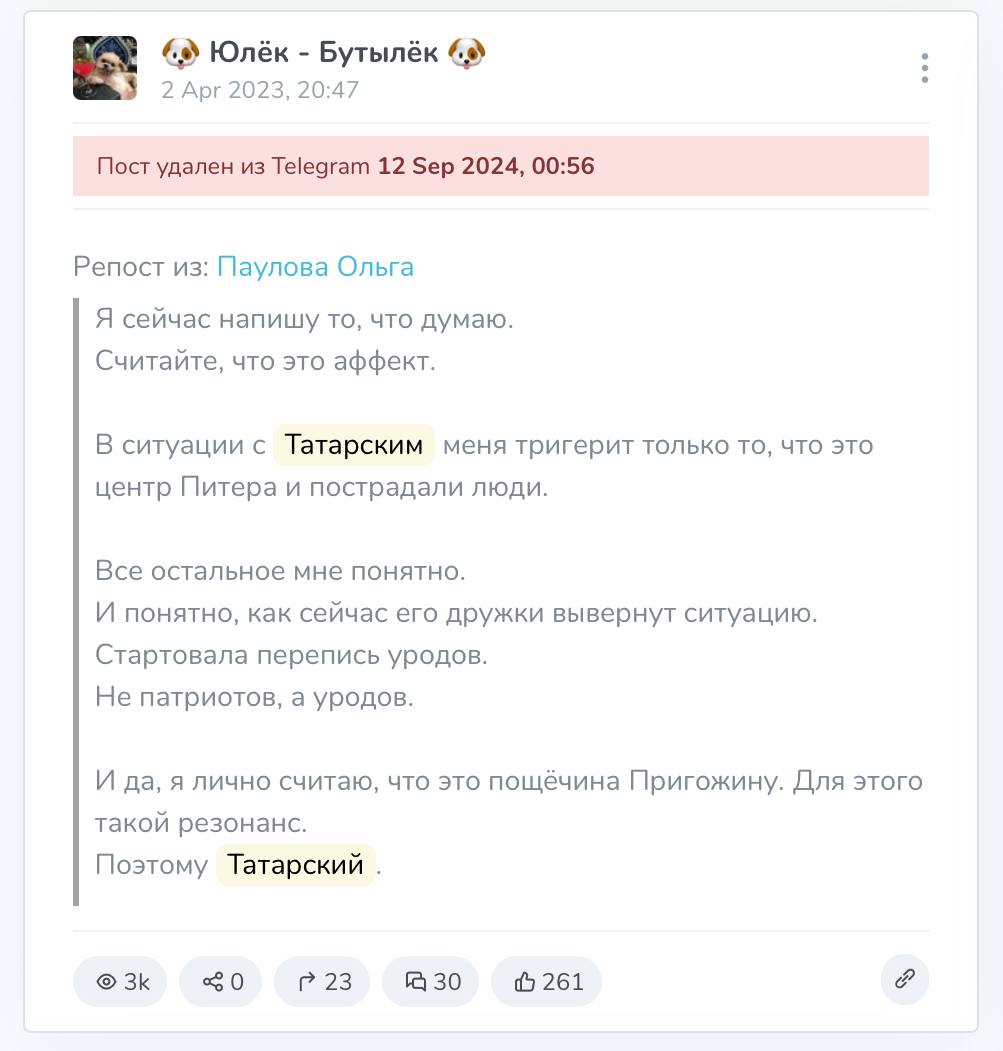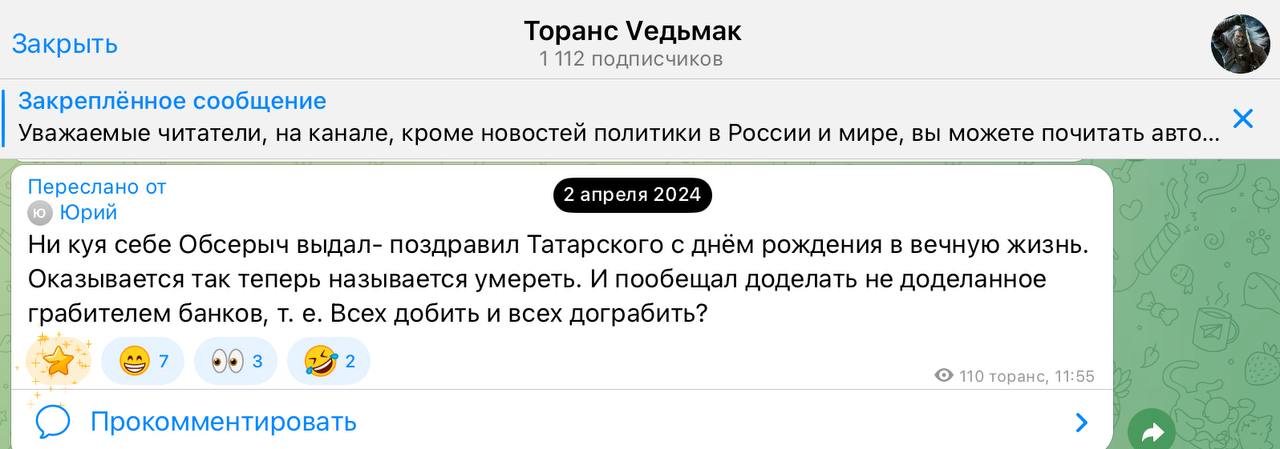 Привожу несколько скринов на посты «сеточки», многие участники которой нещадно травили Владлена, пока он был жив и радовались смерти после теракта. Упоминаний Владлена в их каналах сотни.