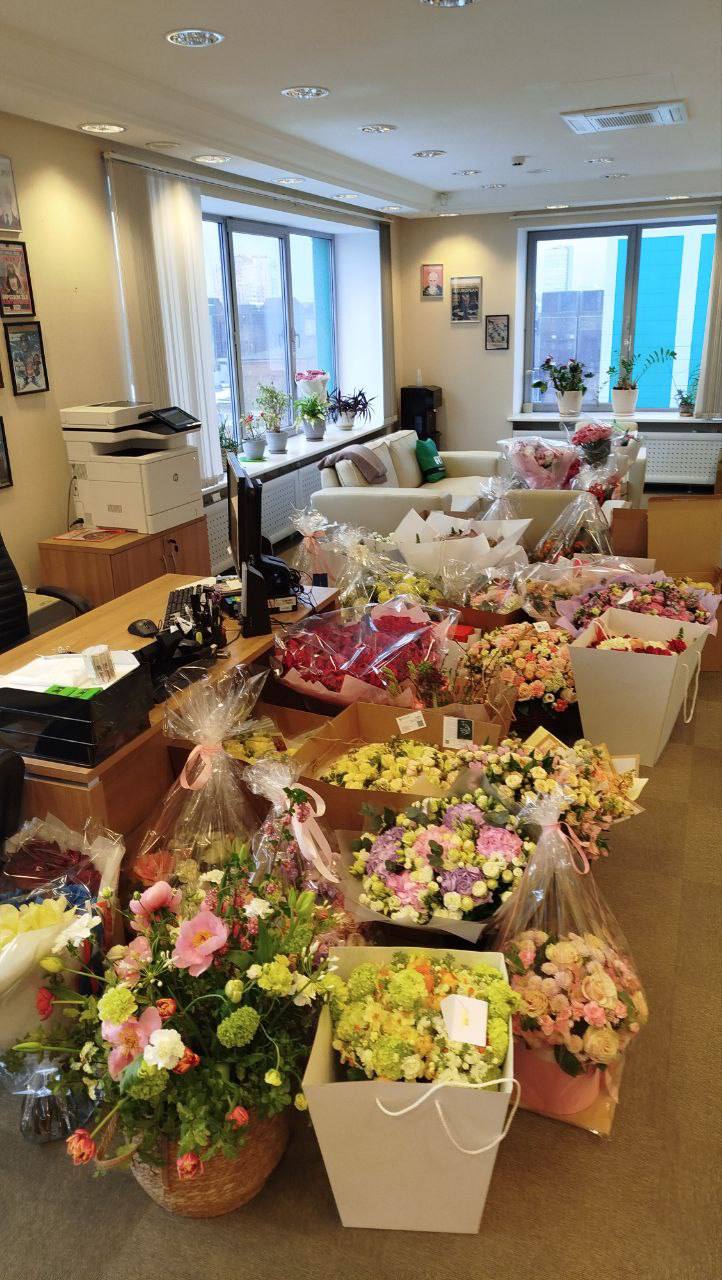 В мой день рождения моя приемная обычно выглядит вот так. Если в деньгах, то это, думаю, не меньше миллиона. А то и не одного.