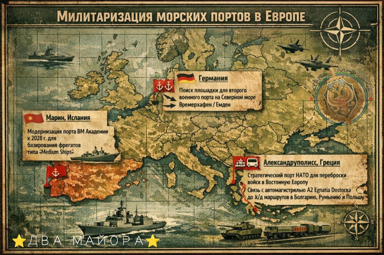 В Германии ВМС и минобороны ведут поиск площадки для строительства второго военного порта на побережье Северного моря. Сейчас у них на этом направлении только порт вВильгельмсхафене. Уже рассматриваются портовая инфраструктура в Бремерхафене (Бремен) и Эмдене (Нижняя Саксония). Новый порт должен обеспечивать растущие потребности на фоне увеличения численности Бундесвера и растущие милитаристские потребности Германии, которая собирается воевать с Россией.