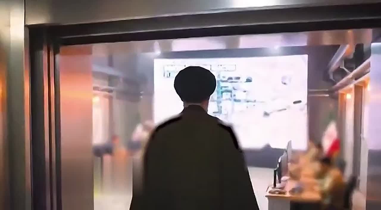Хаменеи заходит в помещение оперативного штаба. На экране изображена атомная электростанция Димона в Израиле с её координатами.