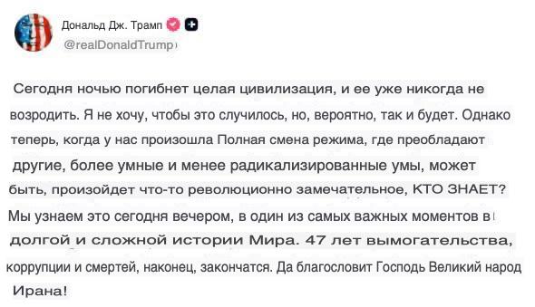 «Мы уверены, что получим ответ от иранцев — положительный или отрицательный — до 8 часов вечера. Я надеюсь, что они дадут правильный ответ, потому что на самом деле мы хотим мира, в котором нефть и газ текут свободно, люди могут позволить себе отапливать и охлаждать свои дома, а также добираться до работы», — заявил Вэнс.