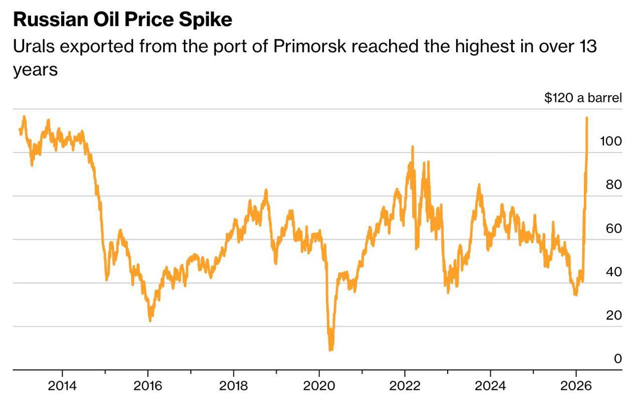 Российская нефть подорожала до максимума за 13 лет на фоне войны с Ираном, - Bloomberg.