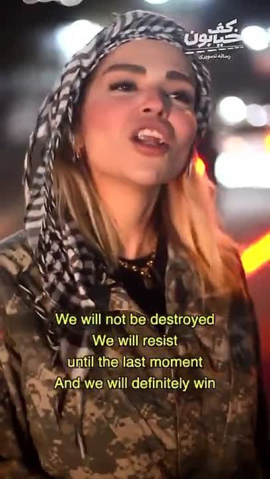 Тем не менее она пришла дежурить на блокпост, потому что «я поддерживаю мою страну и сражаюсь за неё». Она выступает за войну до победного конца, а если Иран проиграет, то «мы погибнем с честью». Драматичная музыка прилагается.