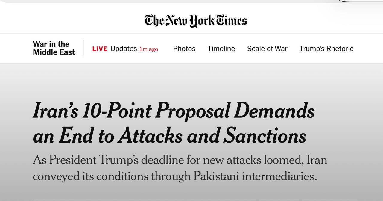 Иран передал через Пакистан в адрес США и Израиля 10-пунктное предложение о завершении войны. Однако его полный текст не раскрывается для широкой общественности.