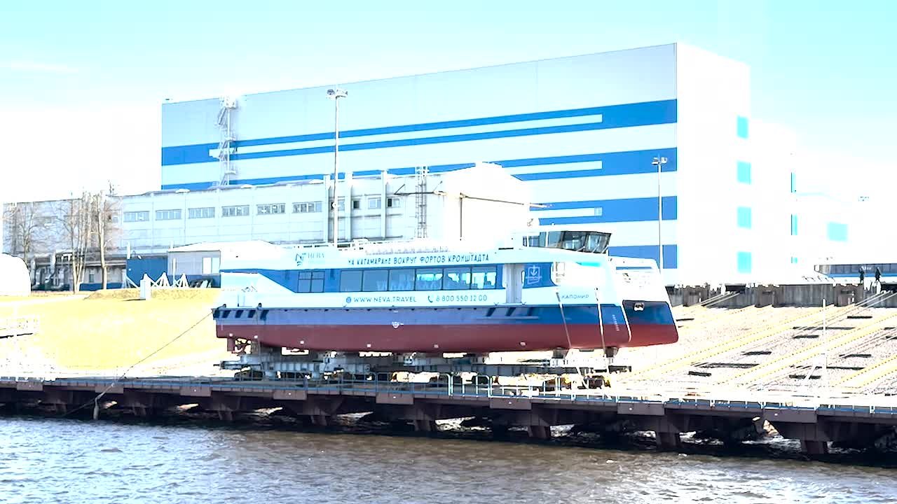 Последний катамаран проекта «Соммерс» спустили на воду. Судно «Капонир» будет возить пассажиров между фортами Кронштадта. Это уже четвертый катамаран серии 04710.