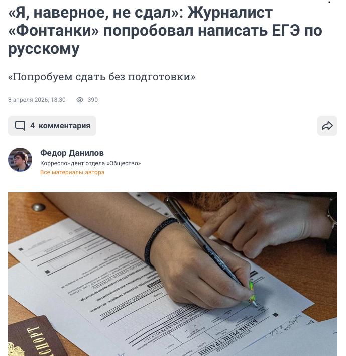 Корреспондент «Фонтанки» попробовал без подготовки сдать ЕГЭ по русскому языку. Угадайте, сколько баллов он набрал. Подсказки есть в тексте и в нашей традиционной грамотности