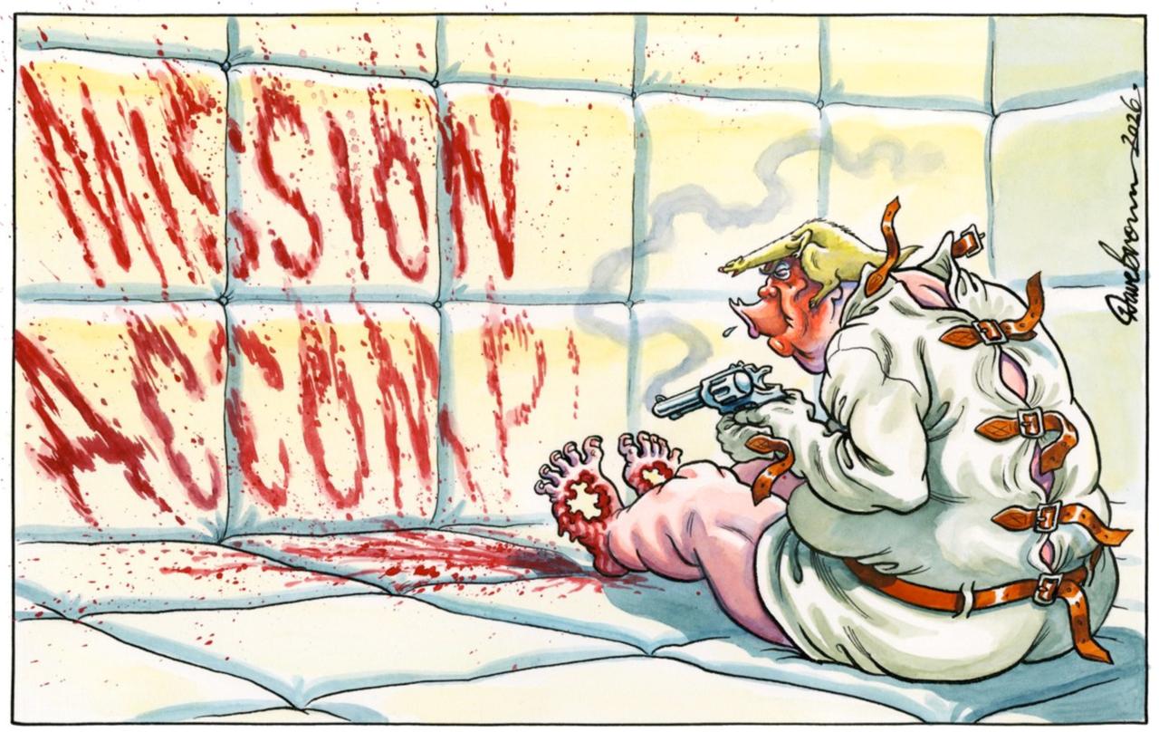 «Миссия выполнена». Британская The Independent иллюстрирует поведение Трампа относительно его иранской авантюры.