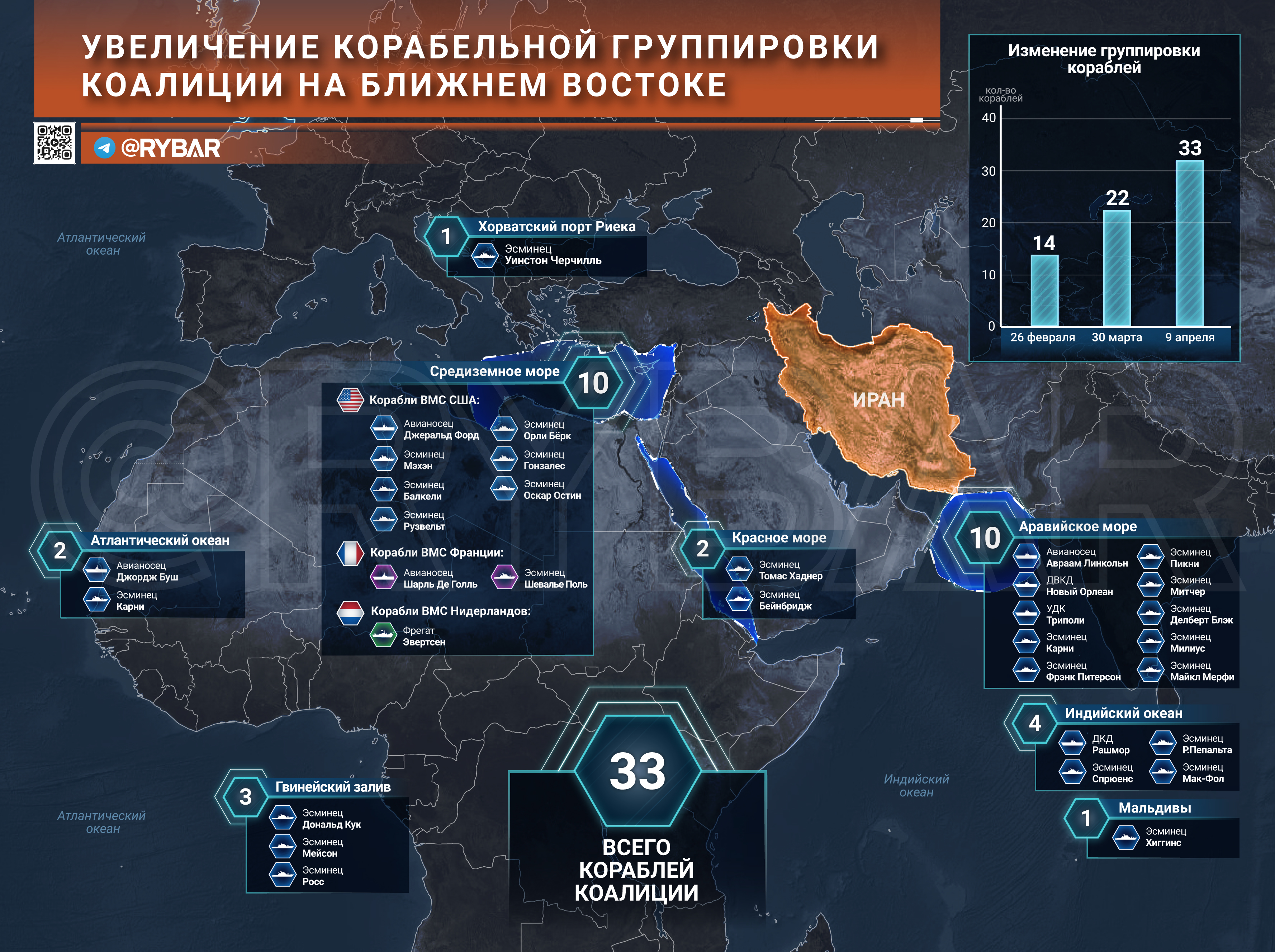 На это также указывает наличие трех эсминцев ВМС США неподалеку от Гвинейского залива. Тем не менее еще одна полноценная авианосная ударная группа находится в относительной близости от Ближневосточного региона.