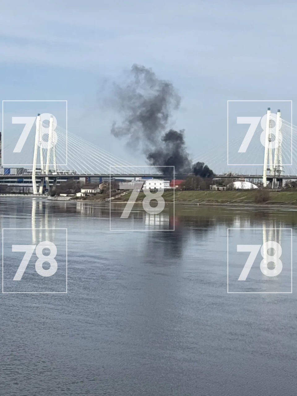 Чёрный дым поднимается около Большого Обуховского моста, сообщает читатель .