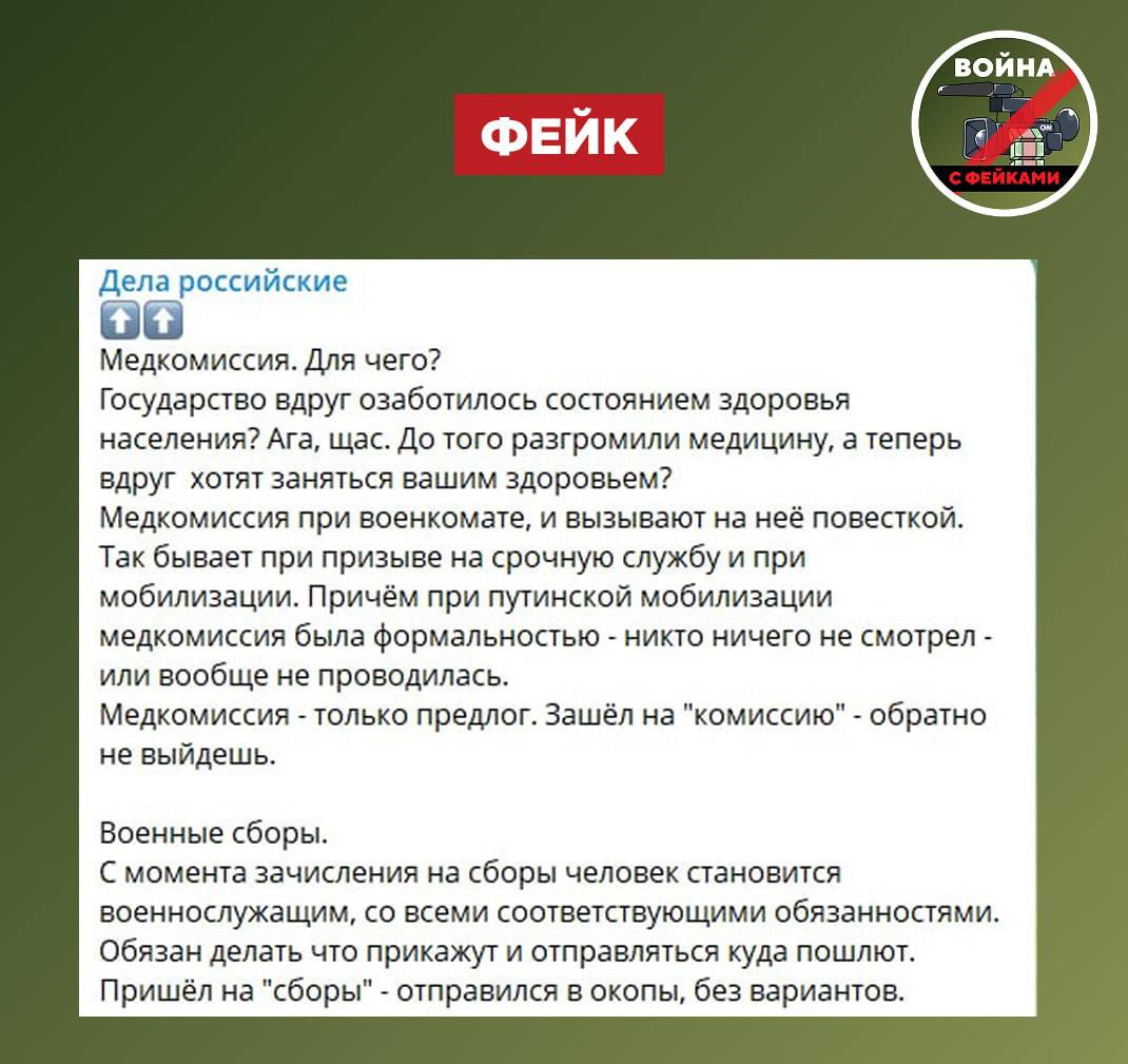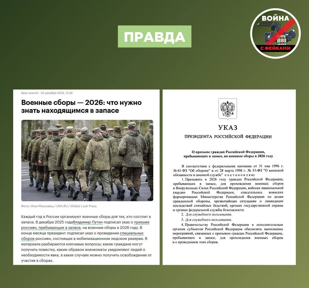 Правда: В России сейчас нет и не планируется новой волны мобилизации. Набранных по контракту военных достаточно для выполнения всех боевых задач. Последняя частичная мобилизация проходила в сентябре 2022 года и была завершена уже в ноябре того же года. Однако фейкометы продолжают использовать этот нарратив для разгона волны панических настроений.