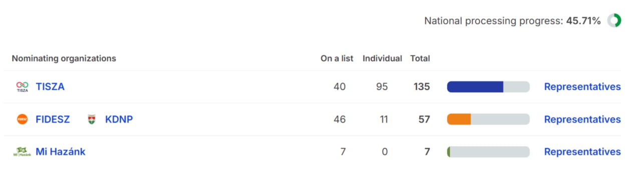 Сейчас подсчитано 45% голосов и Фидес проигрывает более чем в два раза.