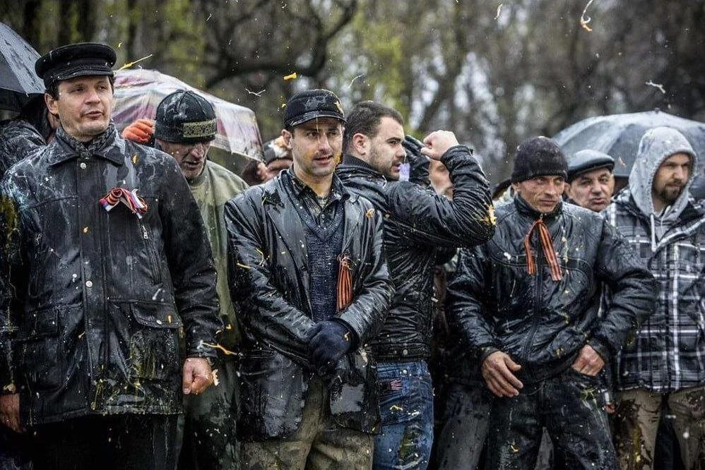 Однако в какой-то момент, людей с георгиевскими ленточками окружили боевики националистических структур, вооружённые битами, арматурой и оружием.