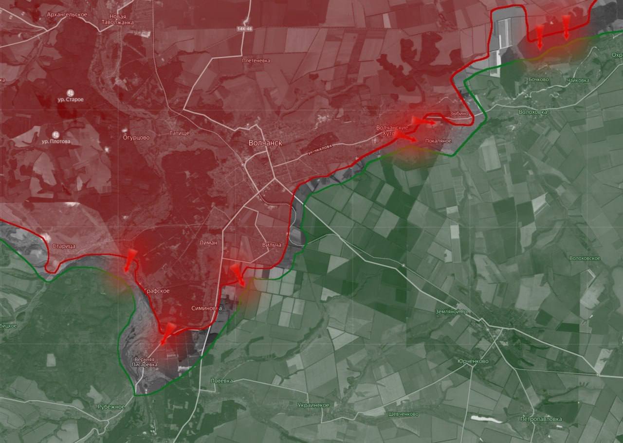 «На Харьковском направлении идут бои в окрестностях Волчанска – в лесных массивах в районе Симоновки и Верхней Писаревки.