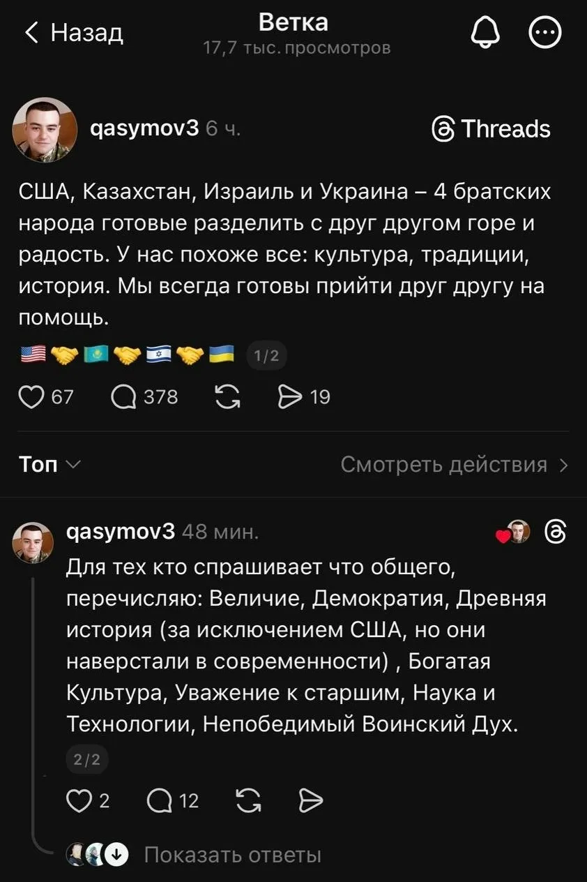 Забавно, друзья. Что касается истории, то самое древнее государство из этой компашки как раз США - образованы в 1776 году. Украина образована в 1919 (ну хорошо, пусть даже в 1918), Казахстан - в 1936, Израиль - в 1948.