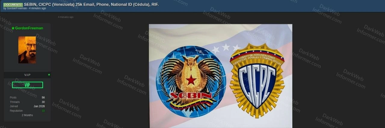 В руки хакеров попали полные имена и фамилии более 25 тысяч сотрудников венесуэльских спецслужб SEBIN и CICPC.