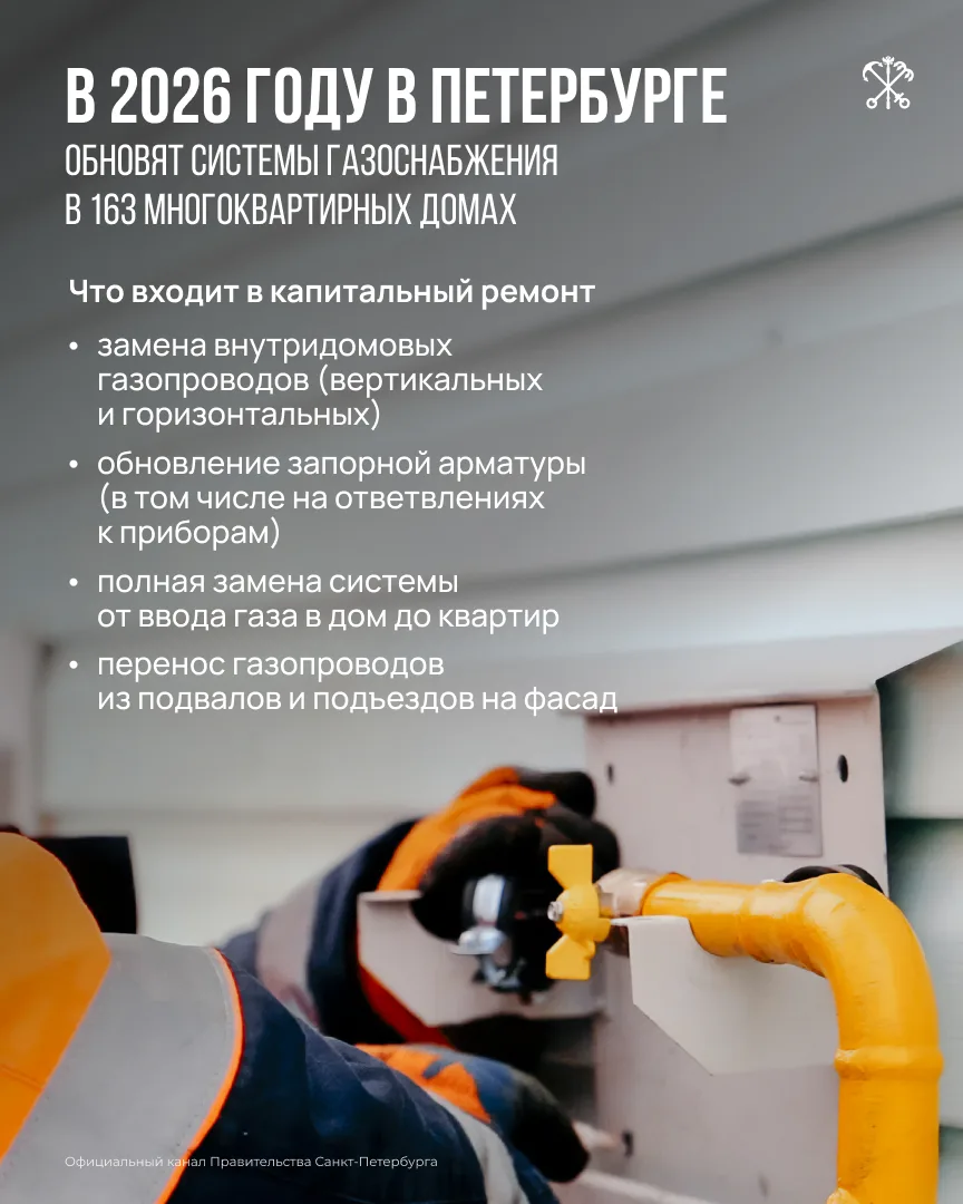 В ходе ремонта полностью обновляют внутридомовую систему газоснабжения. Это позволяет снизить риски аварий и обеспечить надёжную работу системы.
