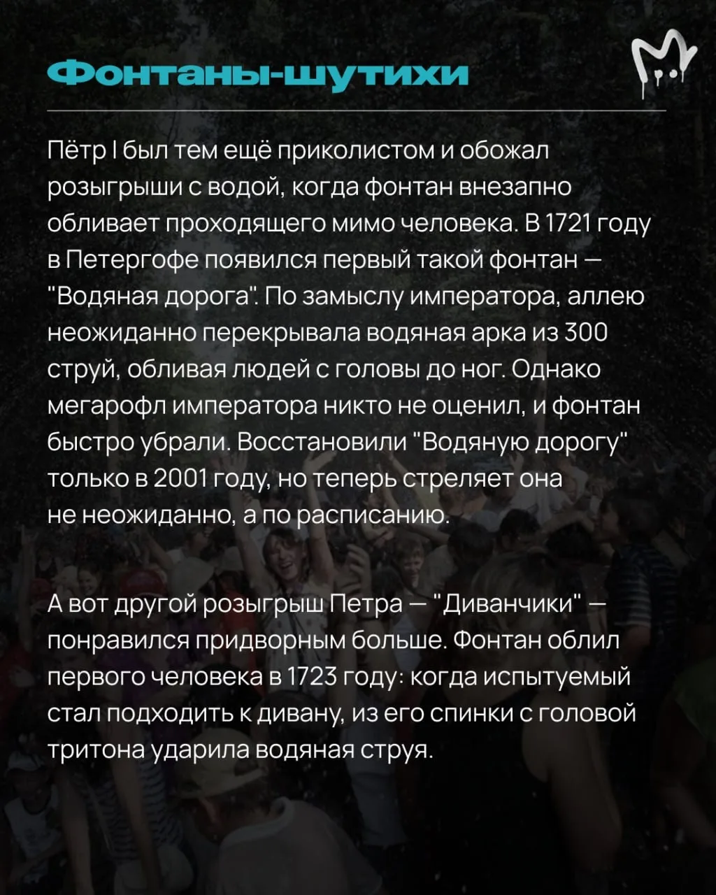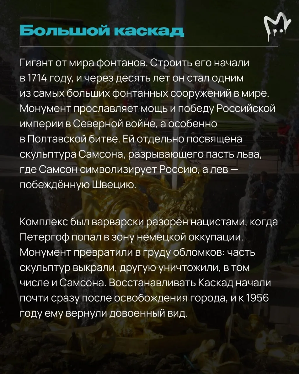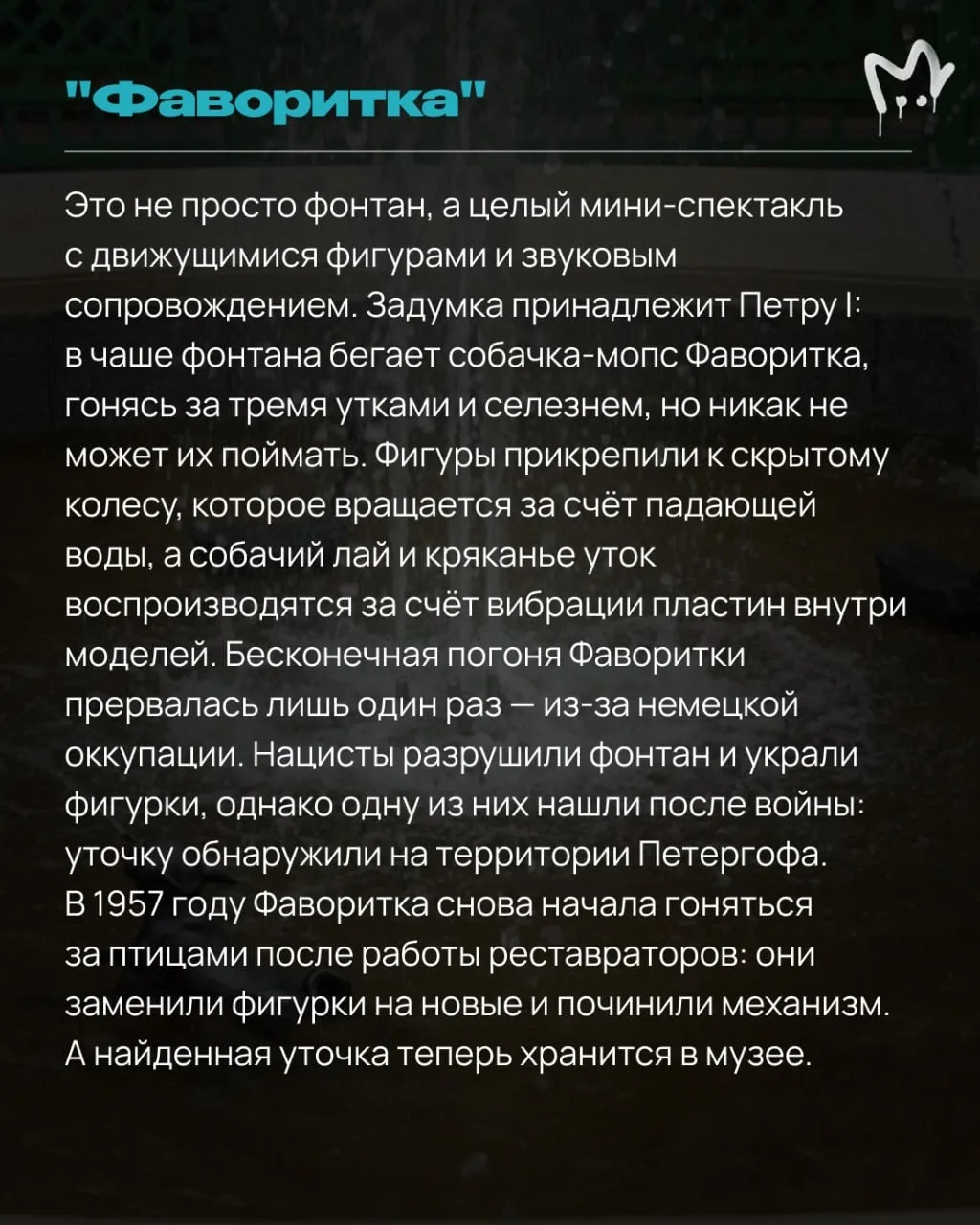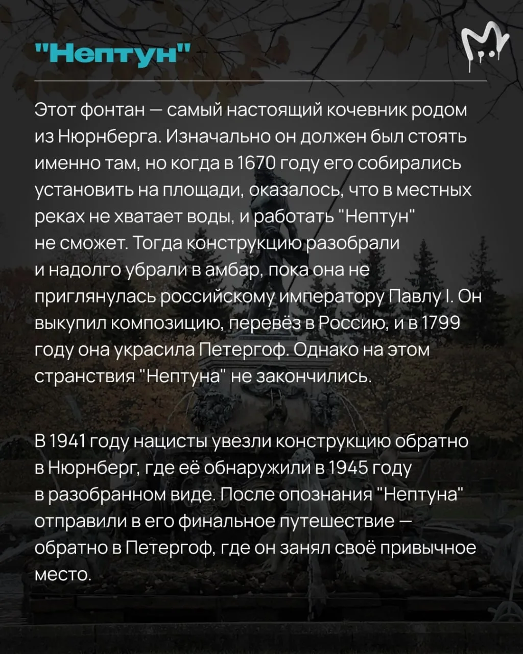 Свои историко-музейные знания можно подтянуть уже там или подготовиться заранее — и почитать истории некоторых фонтанов в наших карточках. Вангуем, будете ходить с умным видом и впечатлять знаниями своих спутников.
