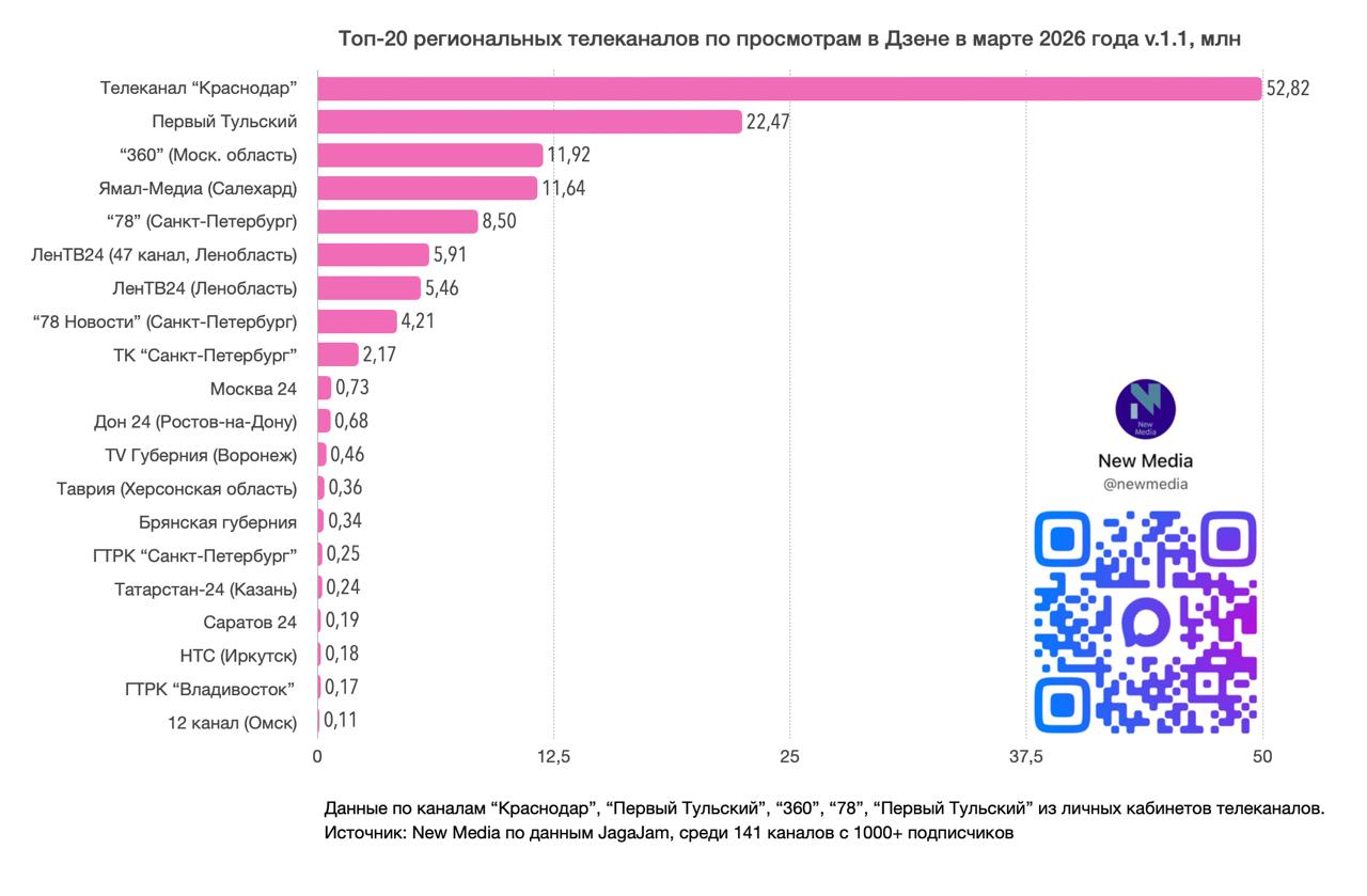 Топ-20 региональных телеканалов в Дзене в марте 2026 года