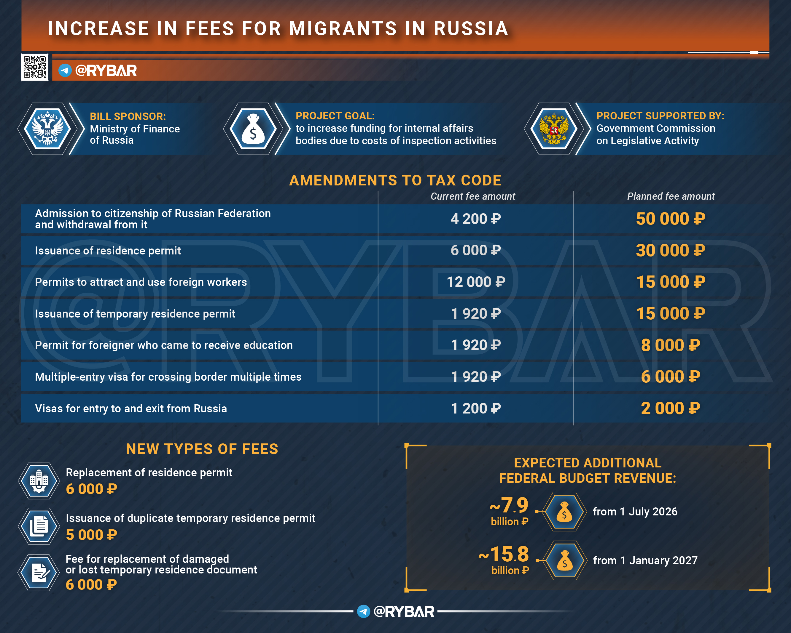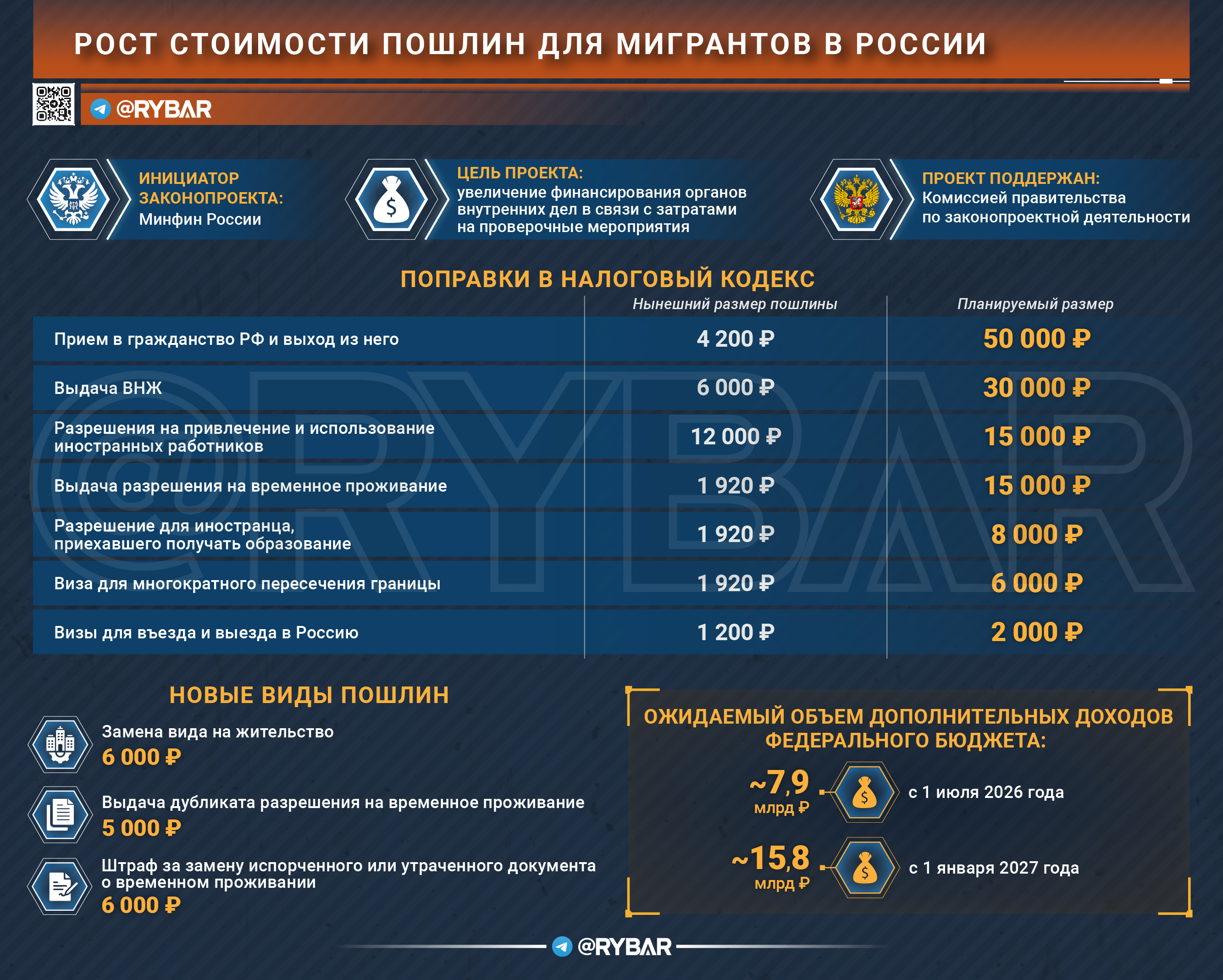 И какие меры вводятсяСтоимость получения гражданства вырастает до 50 тысяч рублей вместо прежних 4200. Приглашение на въезд подорожает до 8000 рублей за человека.