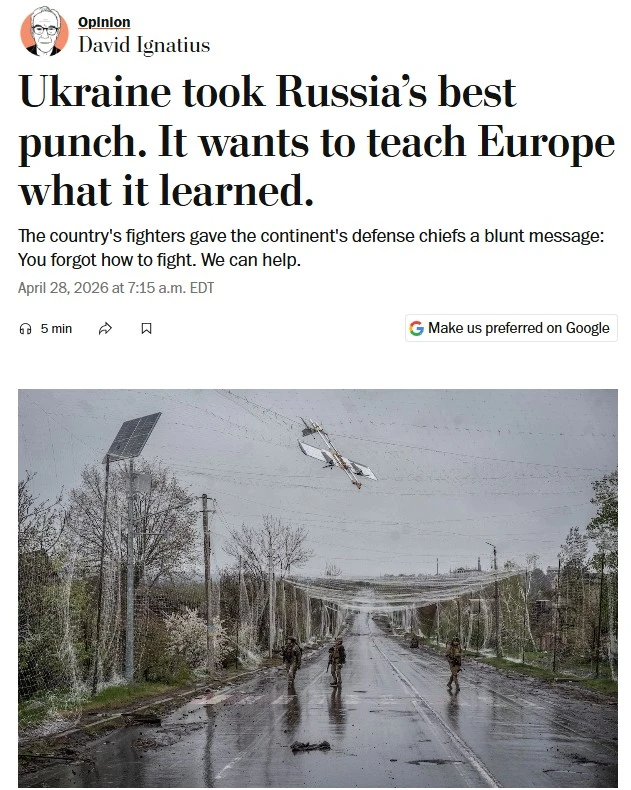 ‘Украинцы хотят научить Европу воевать с русскими’ – обозреватель The Washington Post Дэвид Игнатиус.