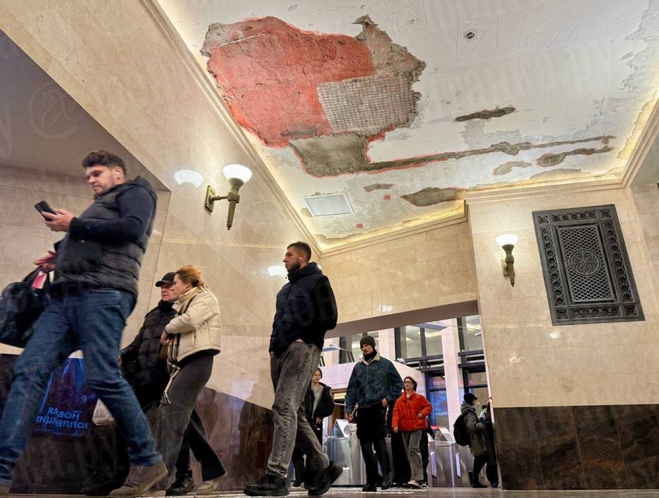 Теперь там видна арматура и заметны следы ремонтных работ — некоторые участки замазаны цементом.Марина Мамонтова/«Фонтанка.ру»@fontankaspb