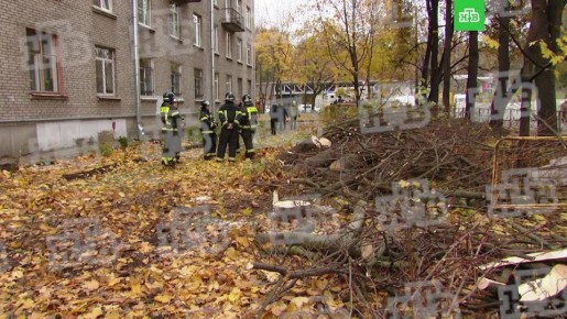 На месте спиливают деревья, пригнали кран. Планируется укрепить грунт в районе провала. Размеры ямы на улице Харченко впечатляют.Дом 29/20 на 1-м Муринском проспекте сейчас пустой, жильцы эвакуированы. Подъезды под охраной Росгвардии. Люди могут зайти...