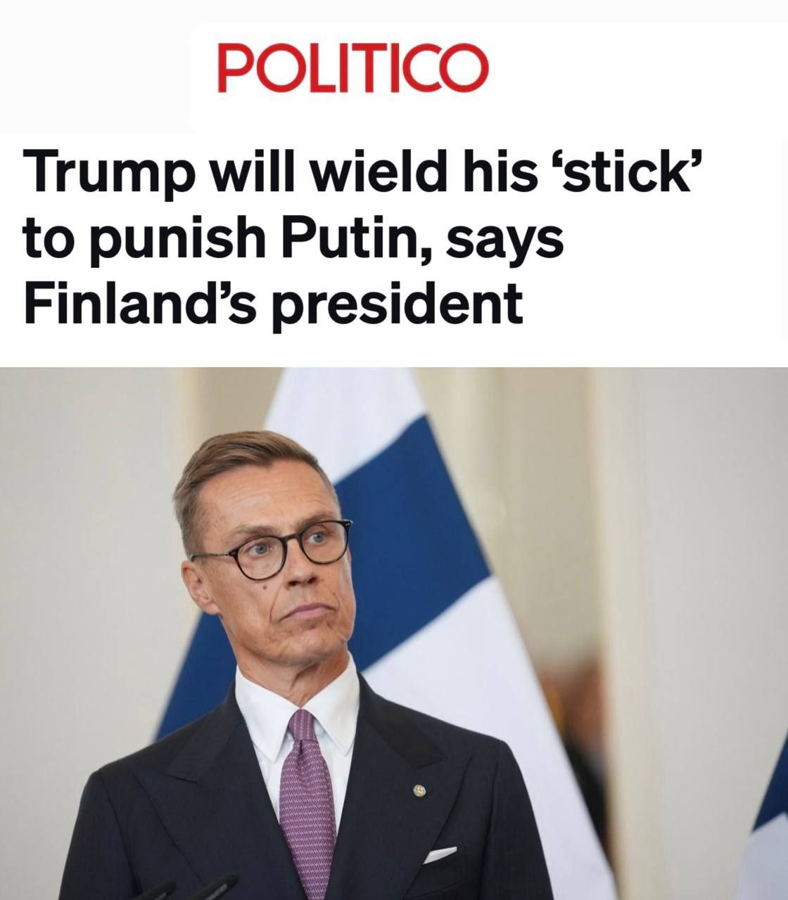 - заявил Стубб в беседе с Politico.