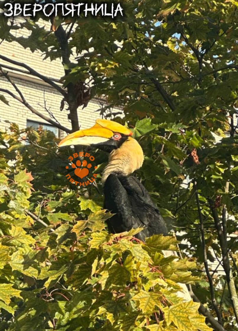 Калао Шанти жив. Птица-носорог, улетевшая вчера из Ленинградского зоопарка, была замечена нашим читателем несколько минут назад в районе метро «Чкаловская»