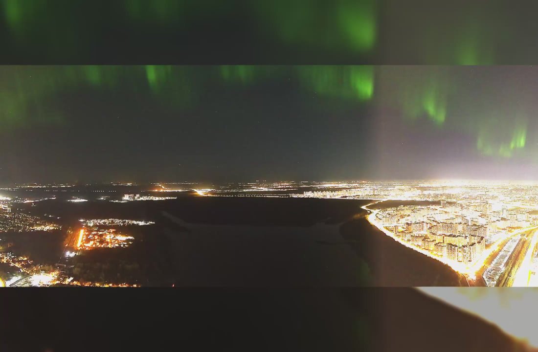 Две ночи над Петербургом было видно северное сияние. Невероятной красоты явление запечатлели с самой высокой точки города – «Лахта Центра».