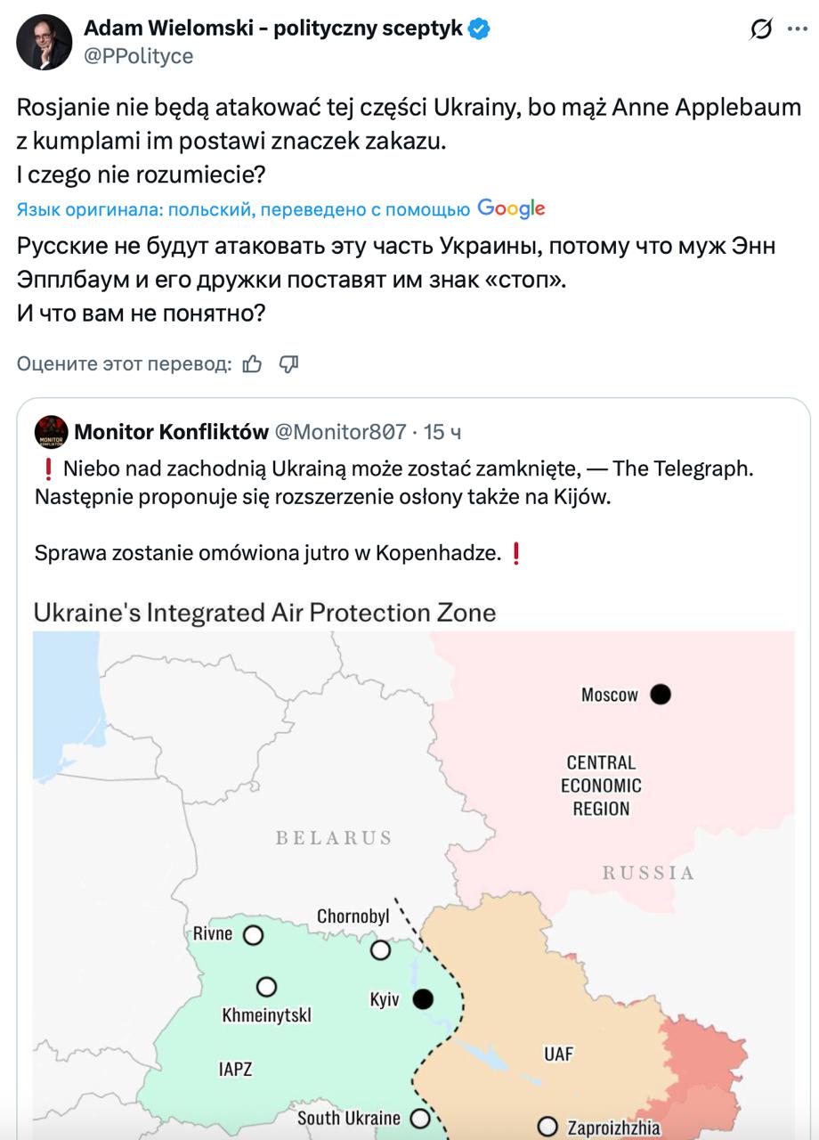 Русские не будут атаковать эту часть Украины, потому что муж Энн Эпплбаум и его дружки поставят им знак «стоп». И что вам не понятно?