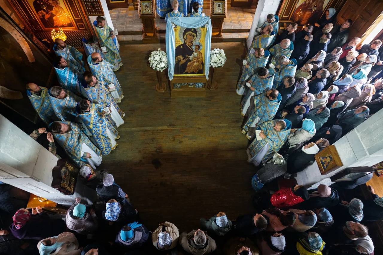 У стен Свято-Иверского монастыря вновь слышен колокольный звон — сюда после одиннадцати лет возвращена Донецкая Вратарница, главная святыня обители, расположенной рядом с руинами Донецкого аэропорта.