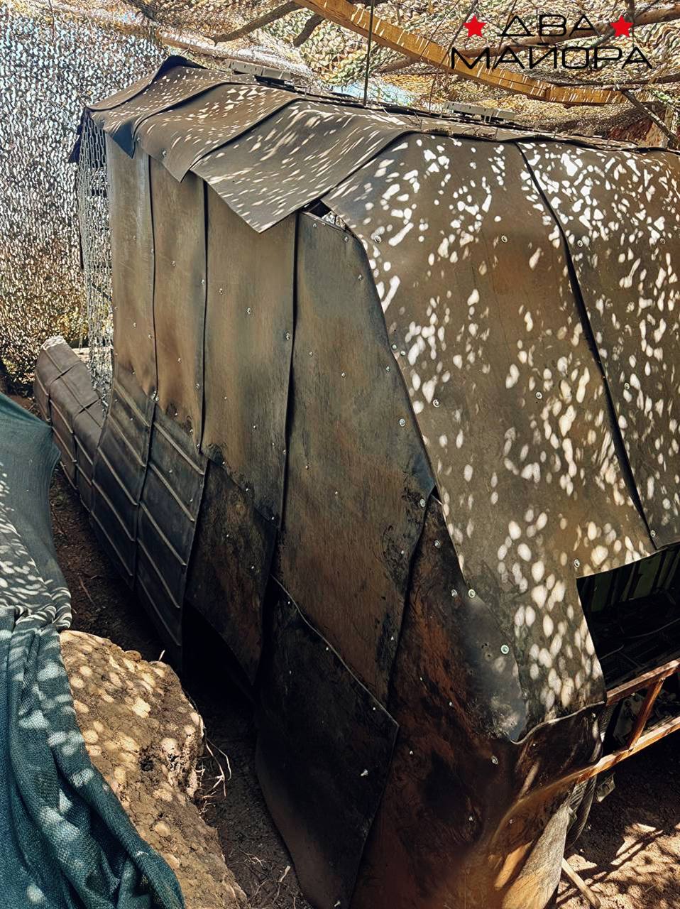 . Это обездвиживание танка, удар FPV в моторное или трансмиссионное отделение, в последующем удар под погон башни и подрыв бк. Данную проблему также решили, защитив моторно-трансмиссионное отделение так называемой системой «Пальма» или «Ежик» состоящей из распушенных металлических тросов, приваренных на арматуру на расстояние 1-1,5 метра.