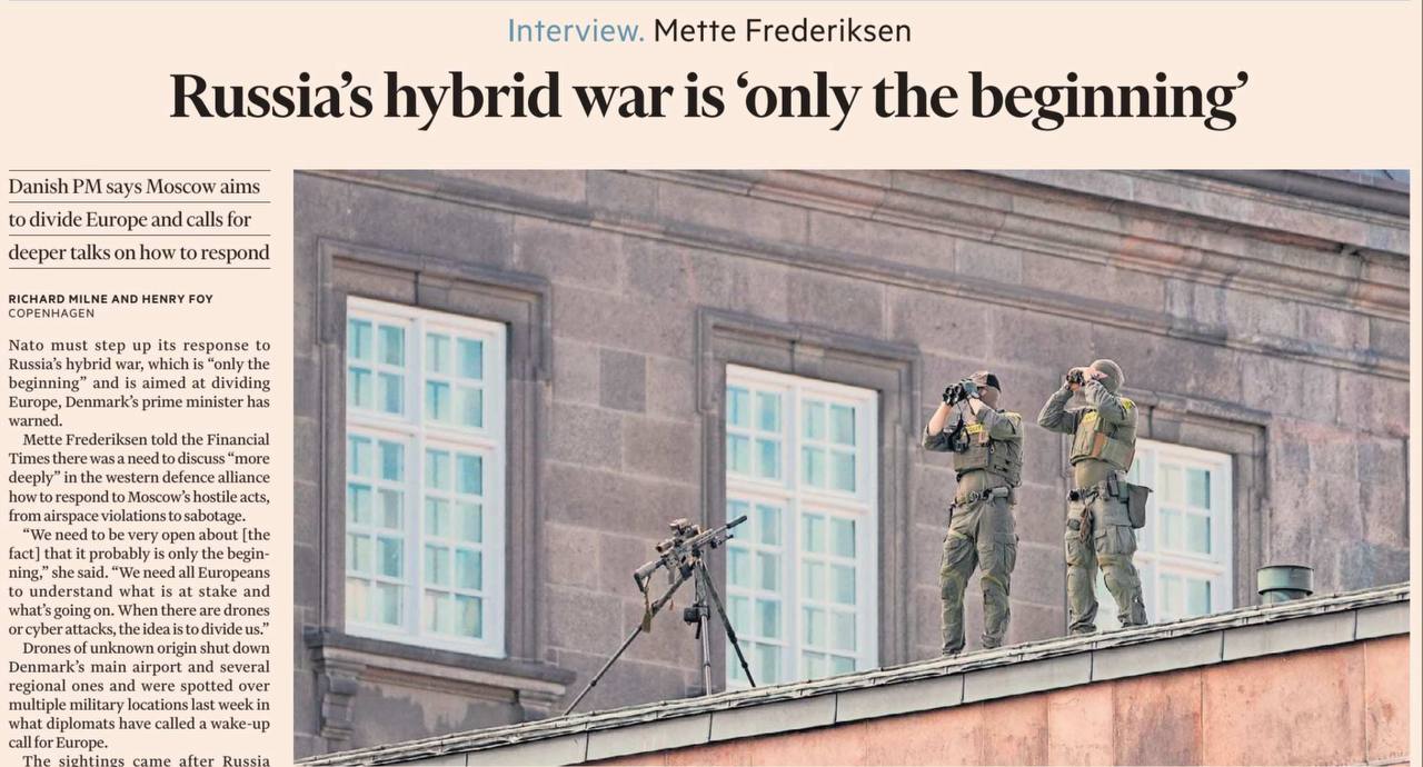Владимир Корнилов: Премьерша Дании Метте Фредриксен в интервью Financial Times предупредила, «Российская гибридная война против Европы только начинается»