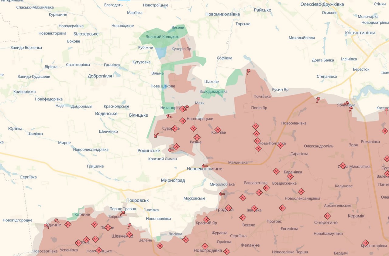 Забавные карты рисует вражеский Дип Стейт. При этом пишет: "Сили Оборони України зачистили Нове Шахове та відкинули противника поблизу Никанорівки та Золотого Колодязя. Ворог просунувся поблизу Новоіванівки та у Полтавці".