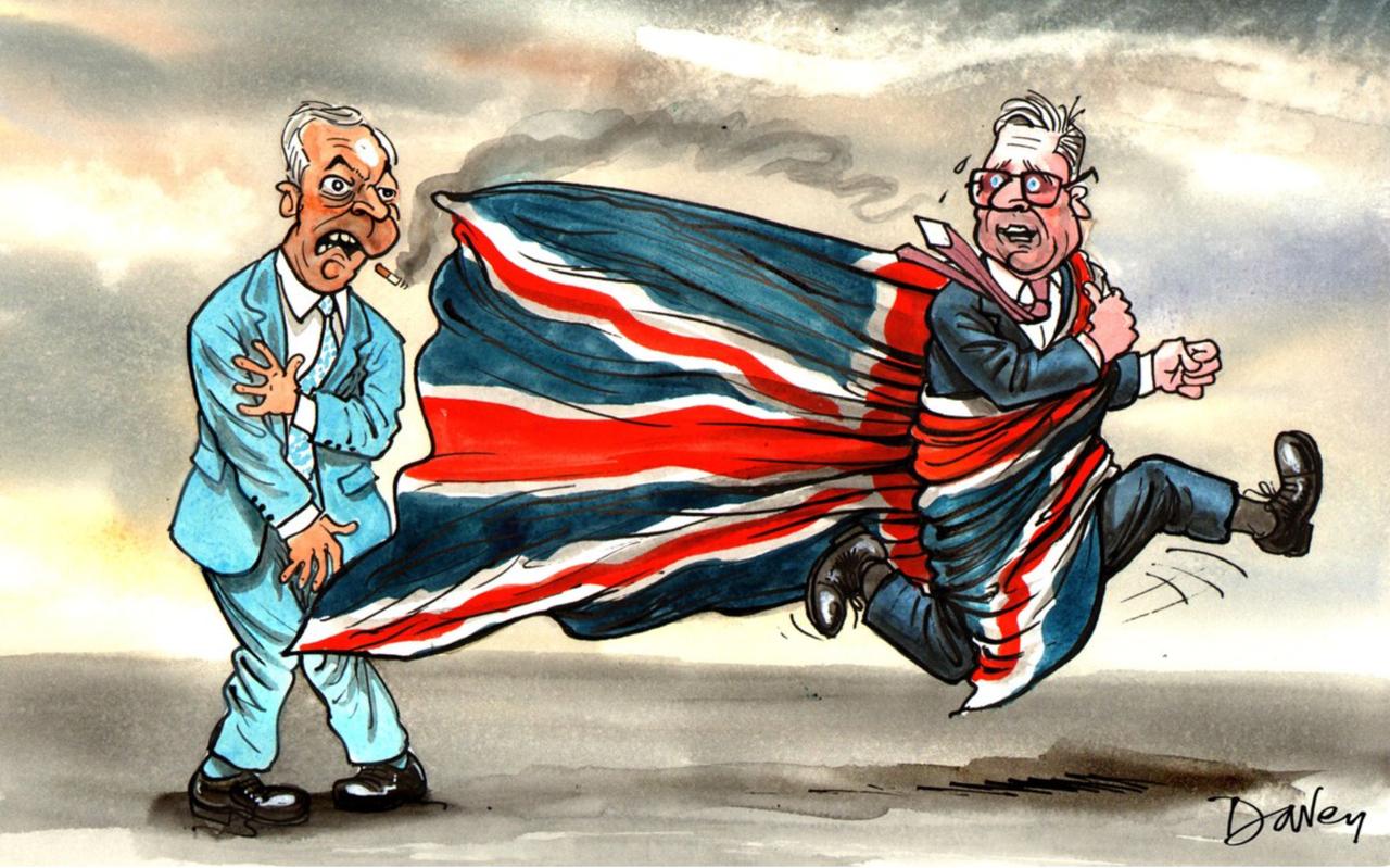 Вот и консервативная The Daily Telegraph вслед за лейбористами веселится над тем, что Стармер на съезде лейбористов размахивал британским флагом по примеру правых. Тем самым прямо-таки сорвал одежды с Фараджа!