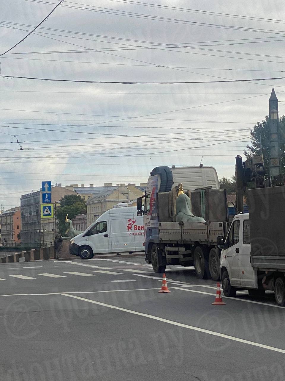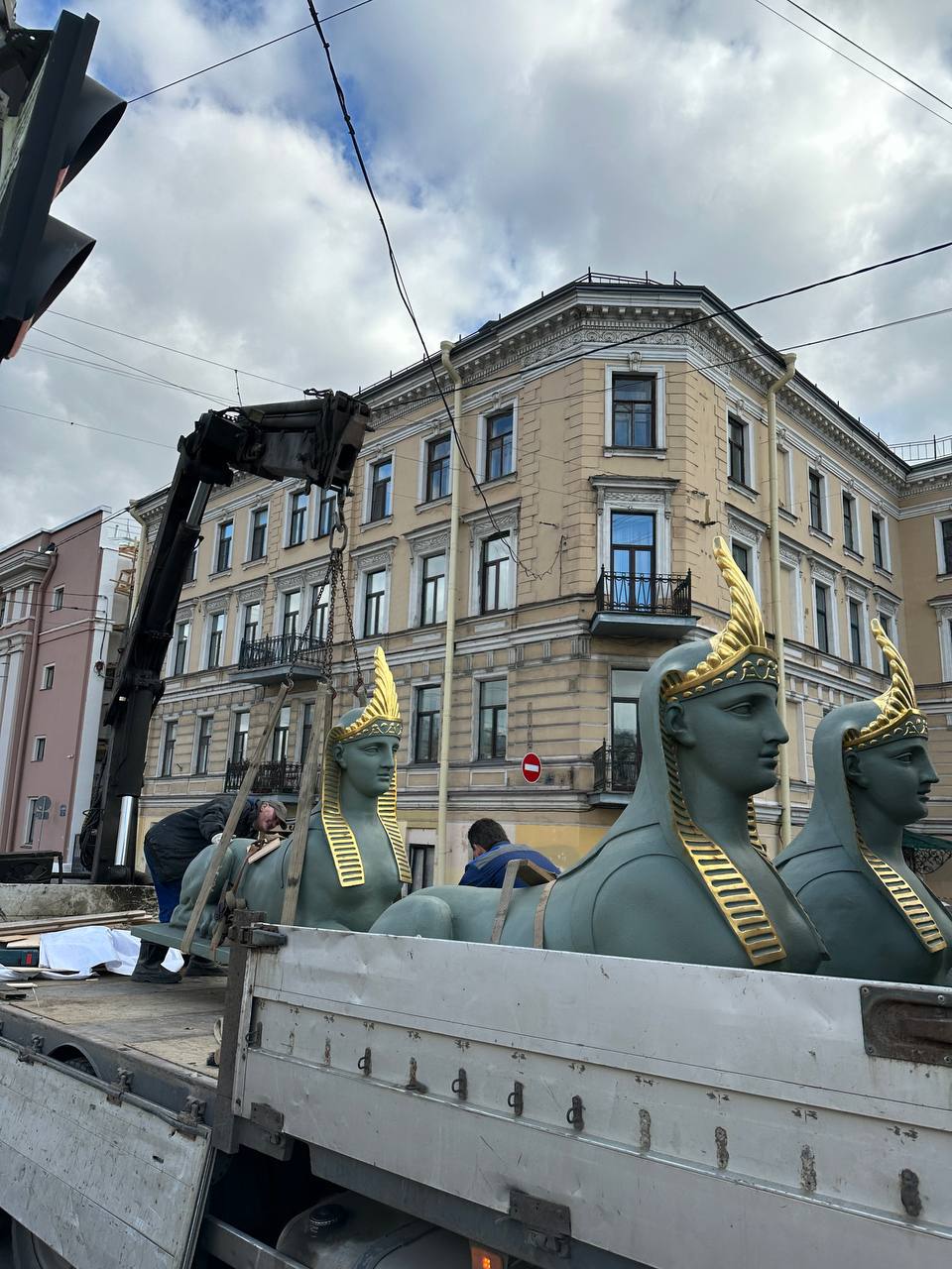 Сфинксов с Египетского моста отправили на реставрацию. Обратно они вернутся только весной.