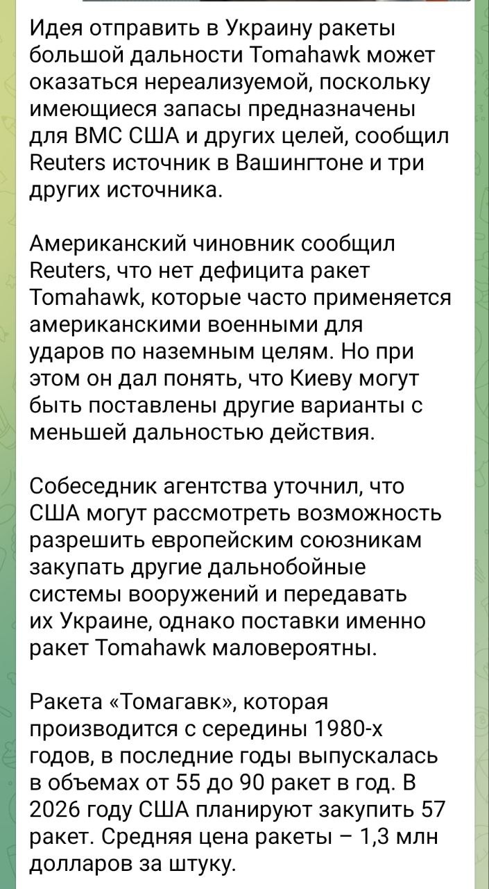Вот похоже и завершается сага о Томагавках. После выступления Путина на Валдае, в Рейтерс вышла заметка, что "не очень то и хотелось, гранаты мол не той системы (с).