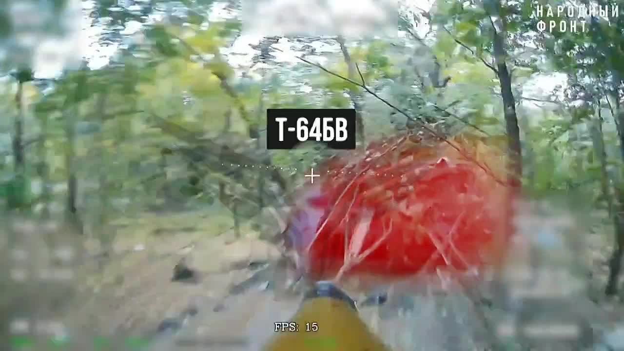 Сумское направление. 30 сентября в районе н.п. Новая Сечь Сумской области расчет FPV-дрона «КВН» Центра «Рубикон» обнаружил находящийся в лесном массиве замаскированный танк Т-64БВ ВСУ